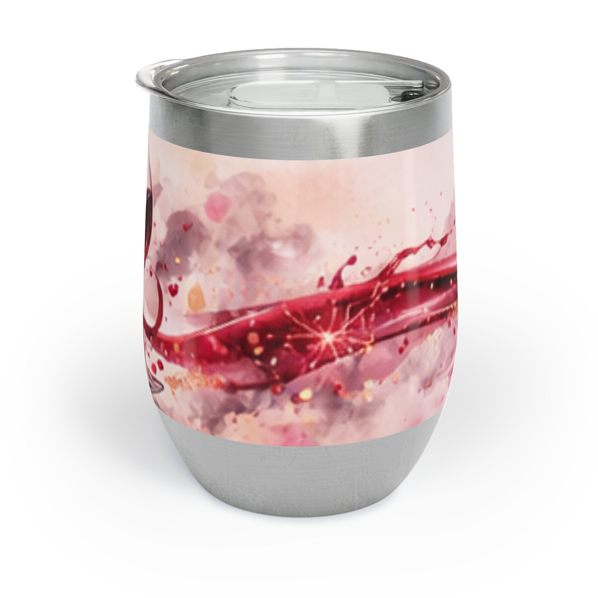 A sleek 12oz stainless steel tumbler that captures a moment of relaxed elegance—an abstract wine spill curling around a minimalist wine glass silhouette on a crisp white background. It feels like settling into a low-lit corner of a favorite kitchen or a cozy nook with soft music and a slow conversation. The slim, wrapped design sits comfortably in hand while the vacuum-insulated walls keep a chilled rosé bright and brisk or a warmed mulled wine gently steaming. Lightweight and durable, it’s crafted for evenings on the couch, slow Sunday mornings, or small, intimate gatherings where the drink matters as much as the company.